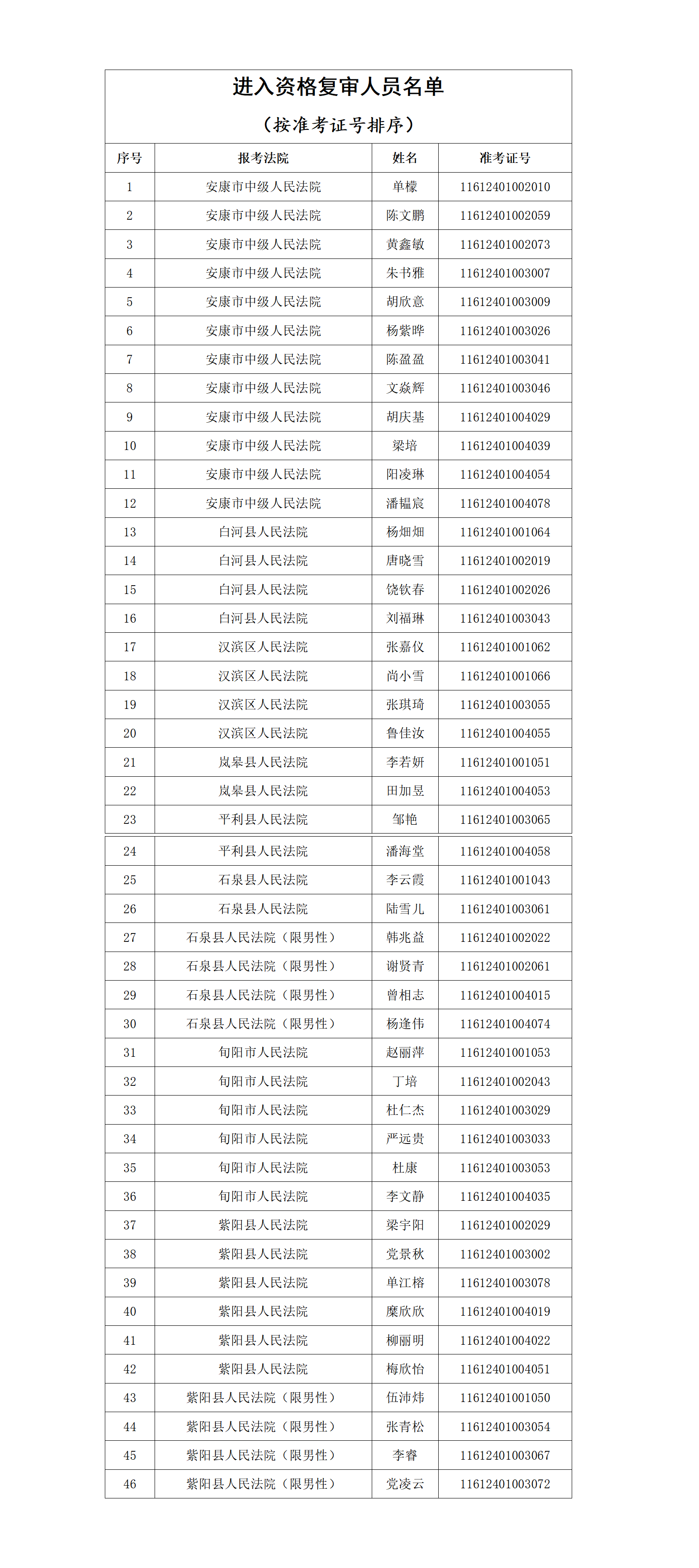 資格復(fù)審工作結(jié)束3日內(nèi),進(jìn)入面試人員名單在安康市中級人民法院及陜西秦潤人力資源集團(tuán)有限公司官網(wǎng)和微信公眾號(hào)上進(jìn)行公布。